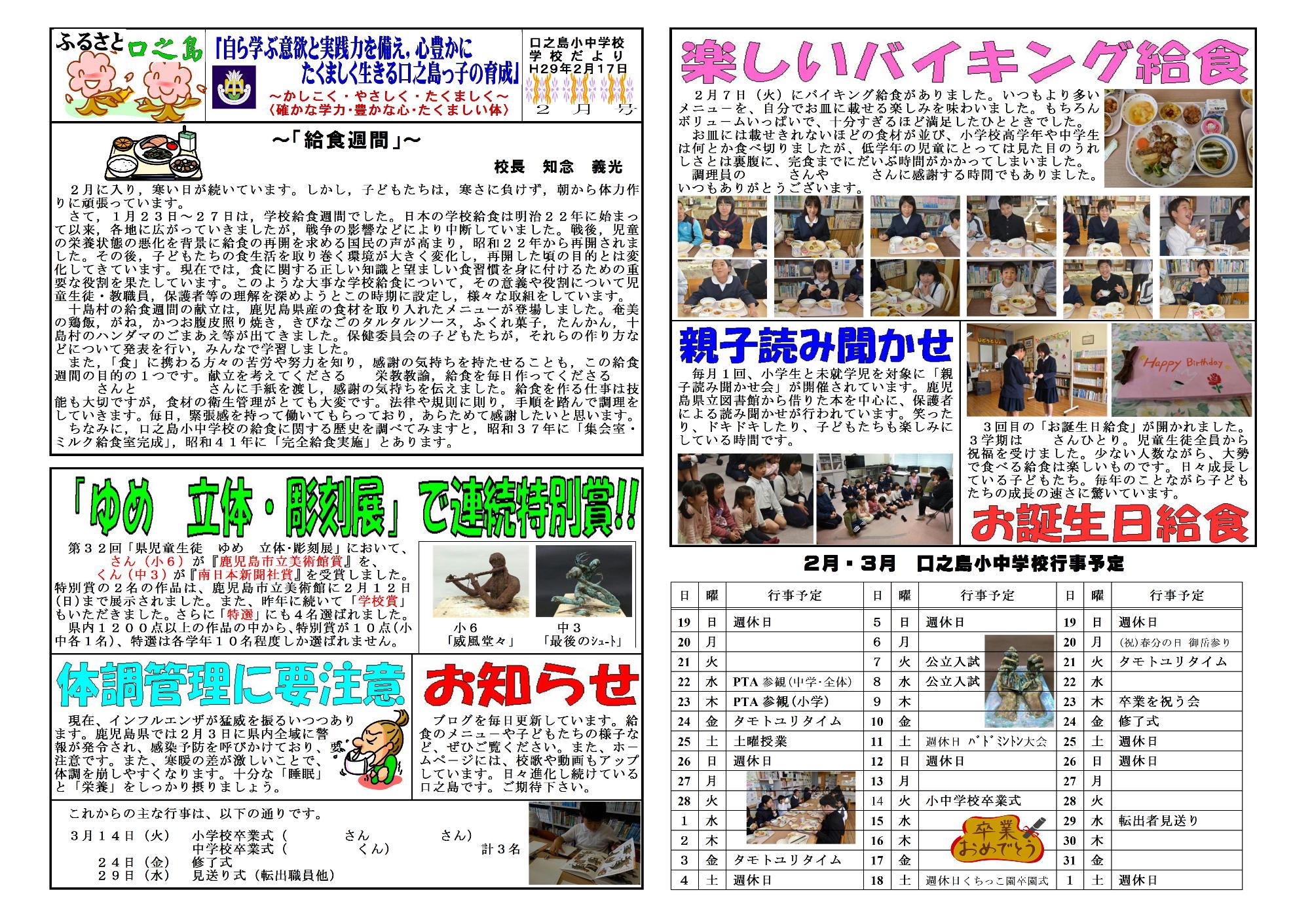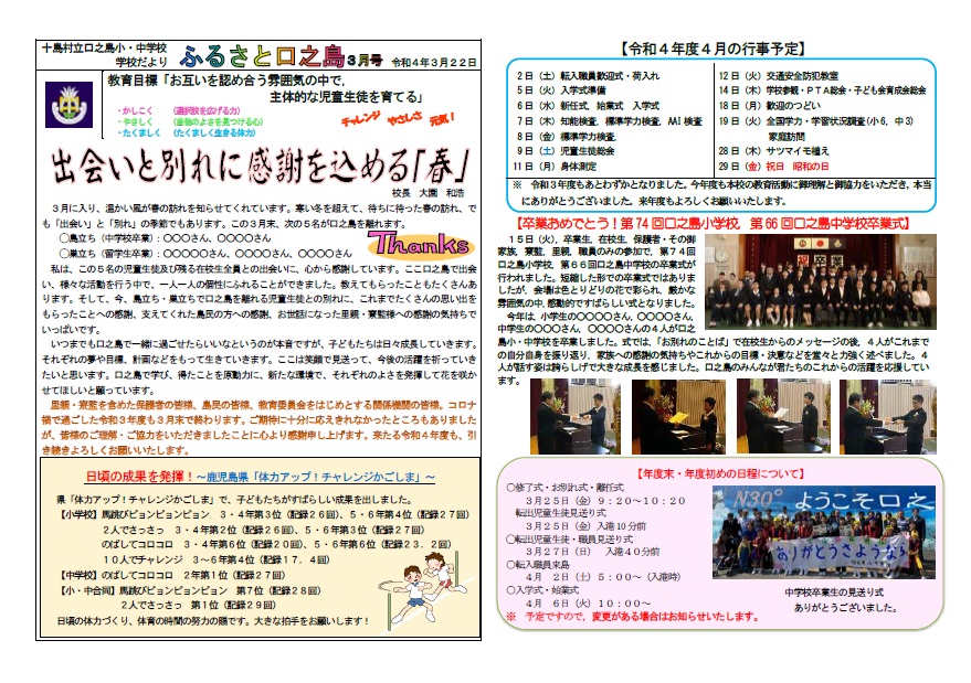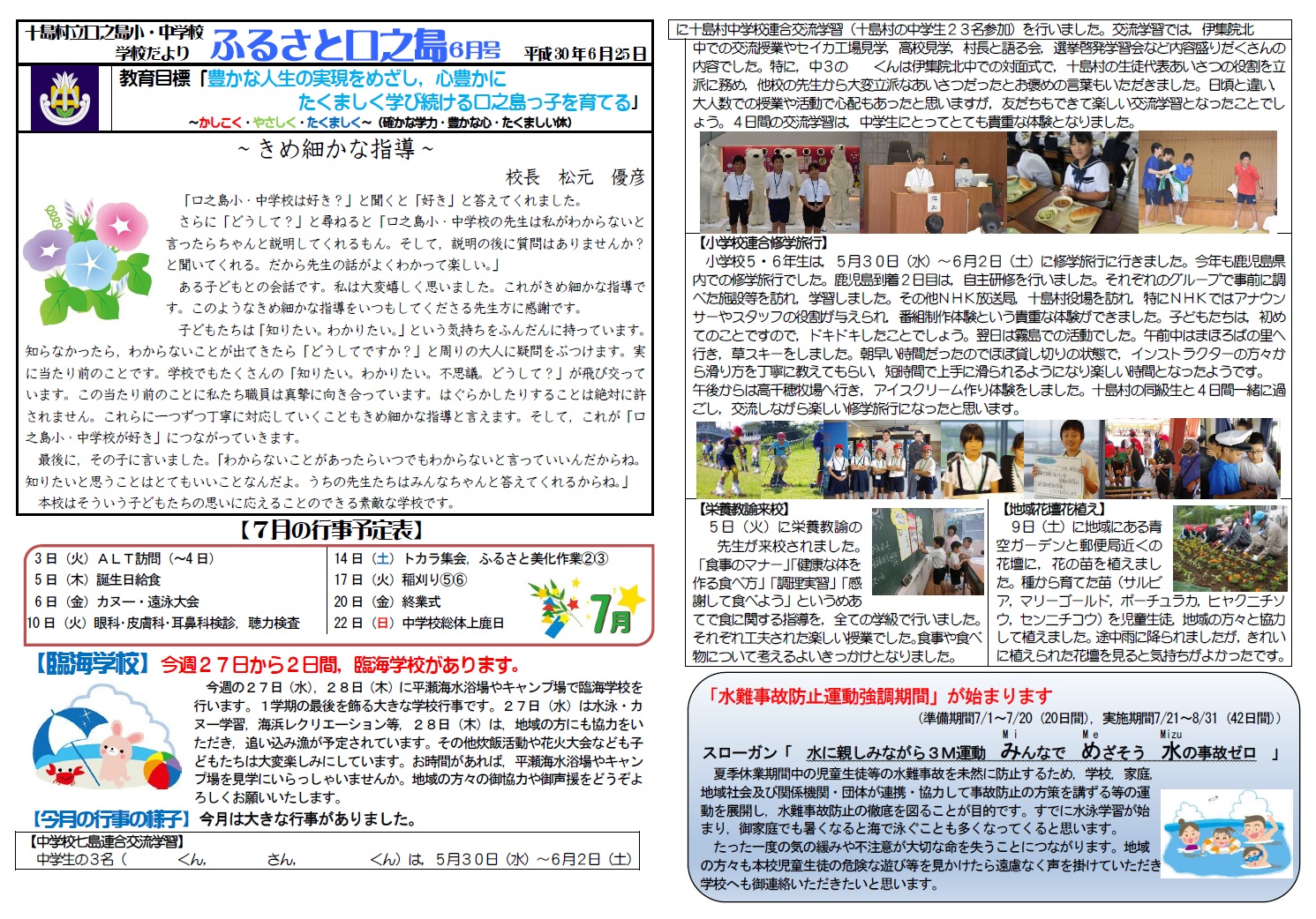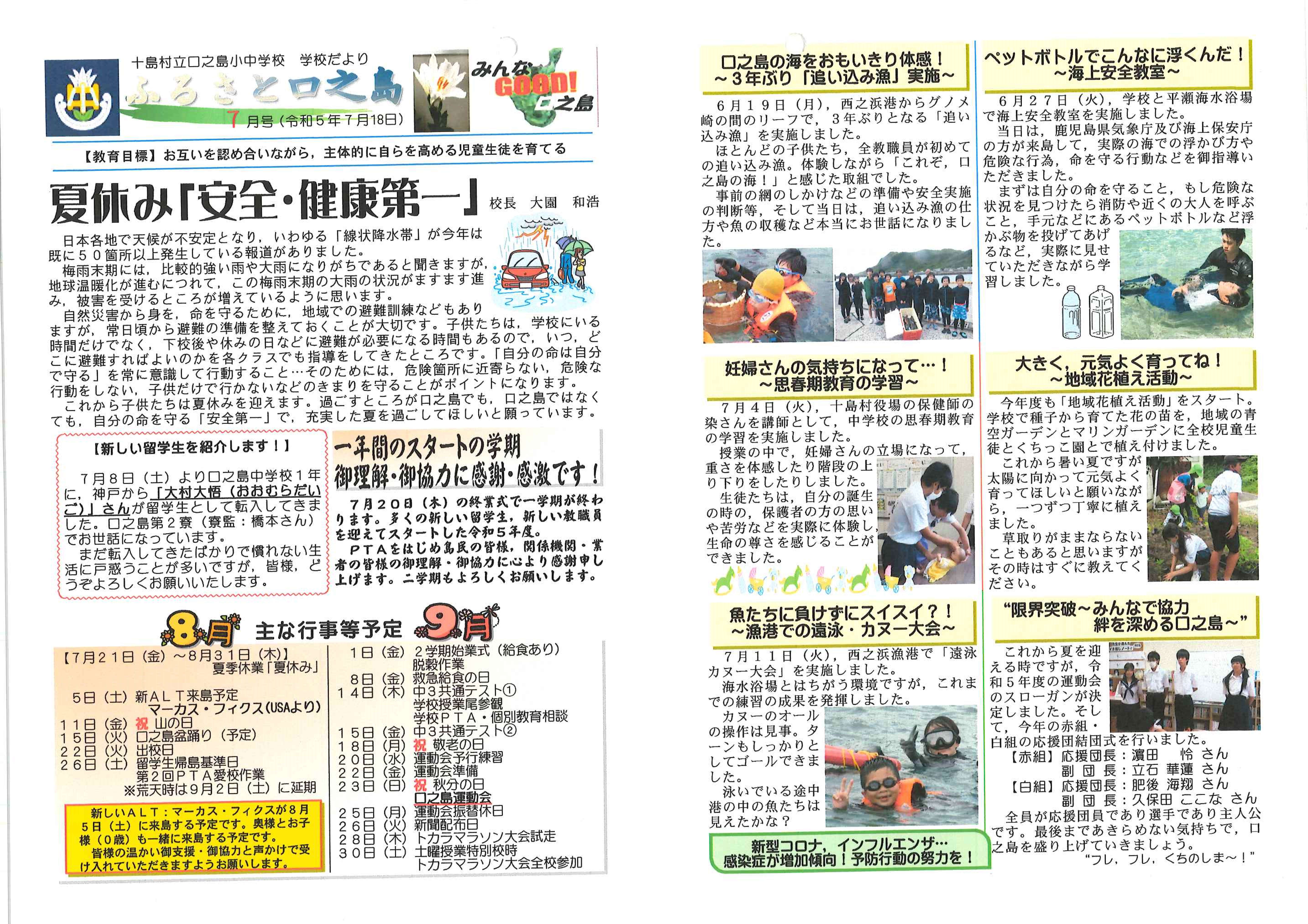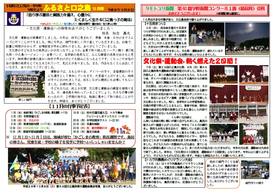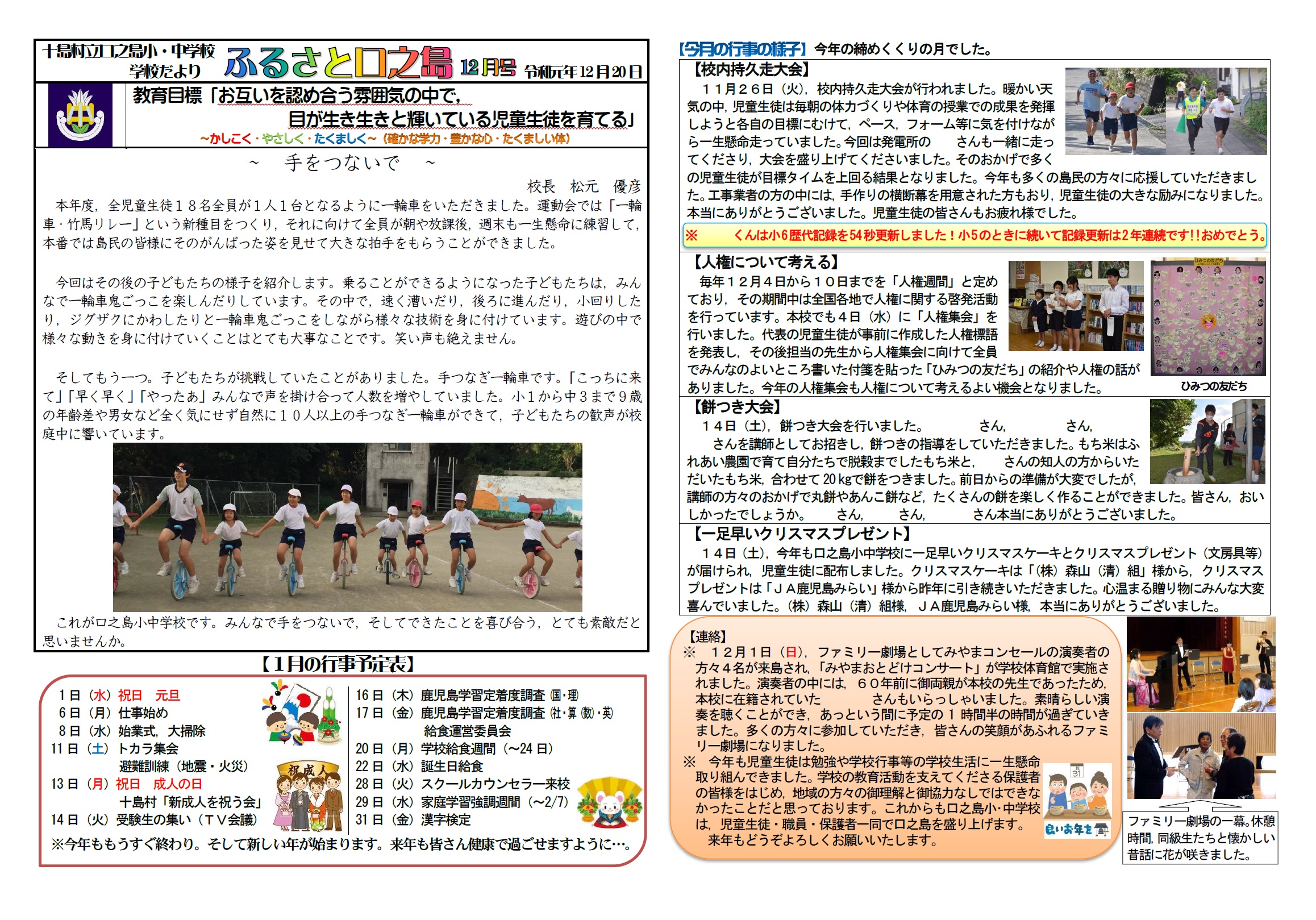 毎月発行している,「学校だより」を掲載します。PDF形式を見るには,「Adobe Reader」等の閲覧ソフトウェアが必要です。画像形式はそのままご覧いただけます(画像はJPEG形式です)。なお,プライバシー保護のため,写真にはぼかしを入れ,個人名等は削除してありますのでご了承下さい。