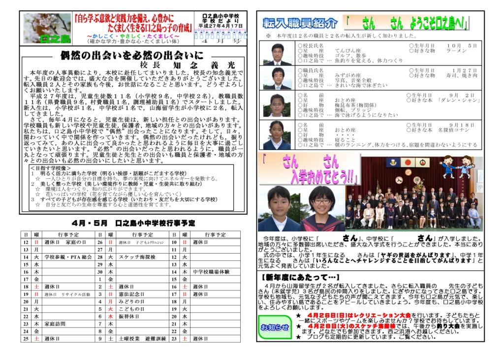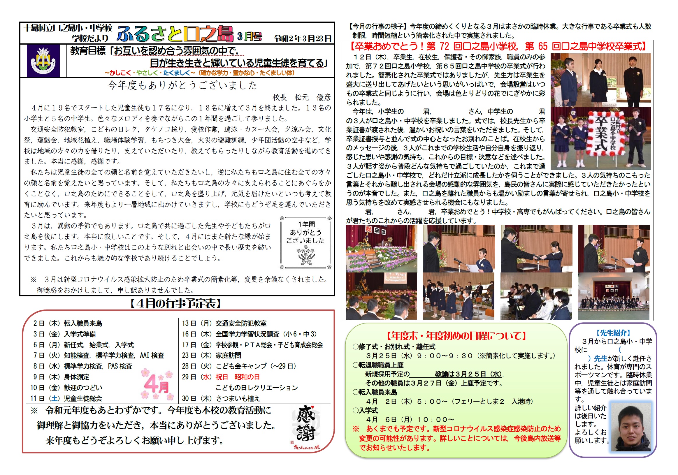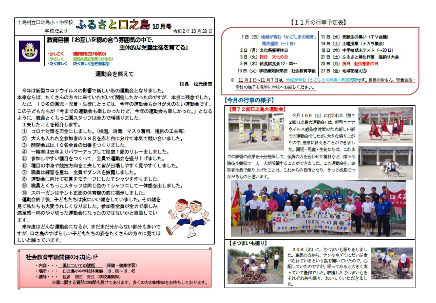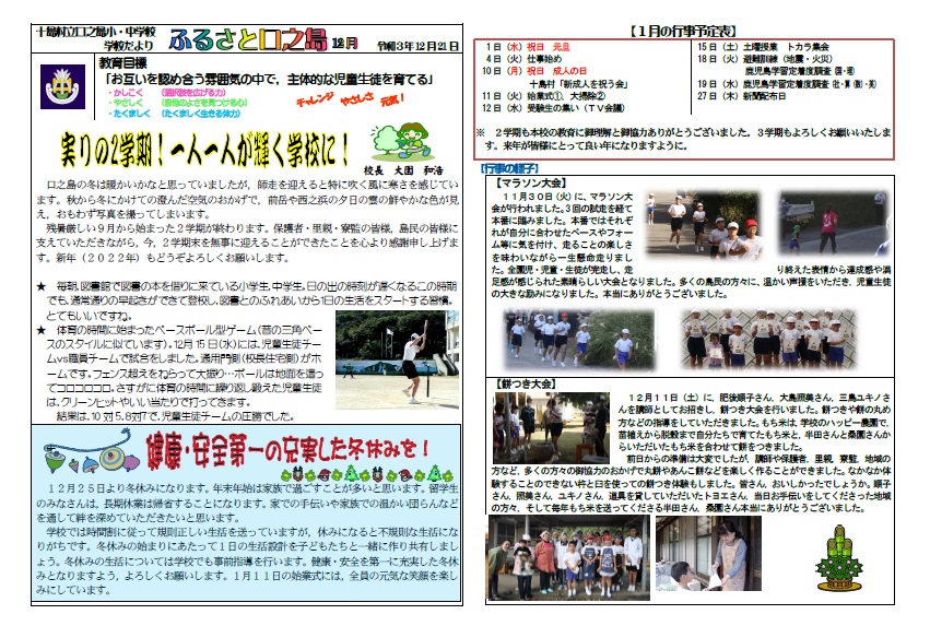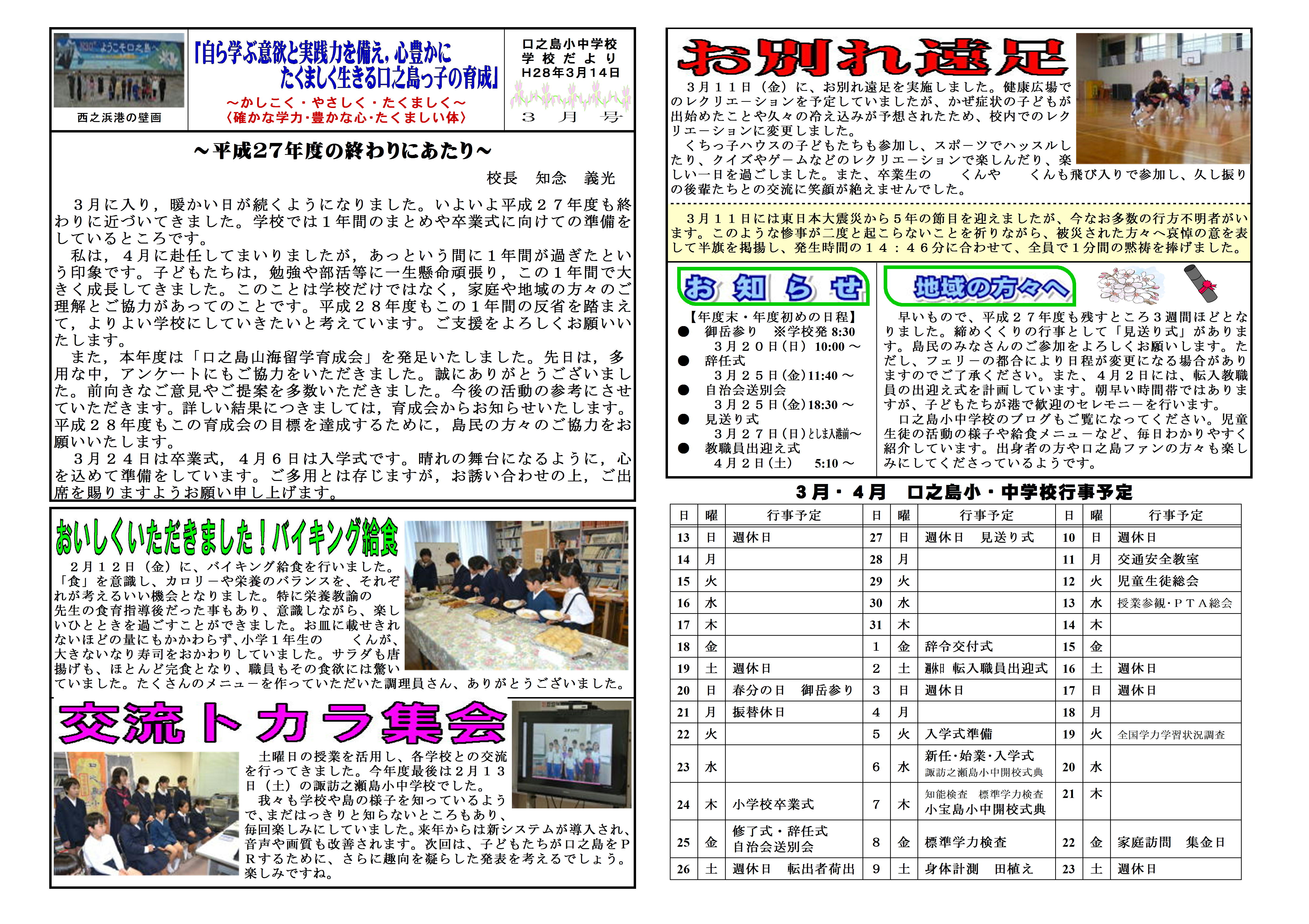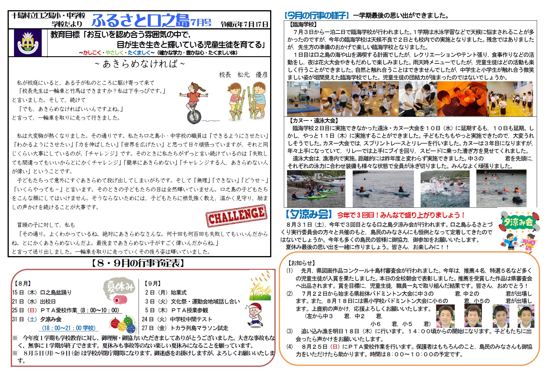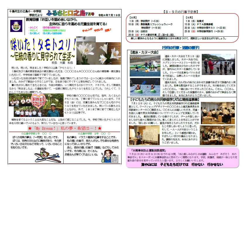 毎月発行している,「学校だより」を掲載します。PDF形式を見るには,「Adobe Reader」等の閲覧ソフトウェアが必要です。画像形式はそのままご覧いただけます(画像はJPEG形式です)。なお,プライバシー保護のため,写真にはぼかしを入れ,個人名等は削除してありますのでご了承下さい。