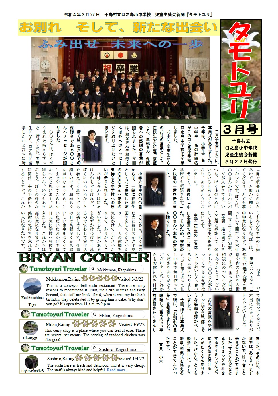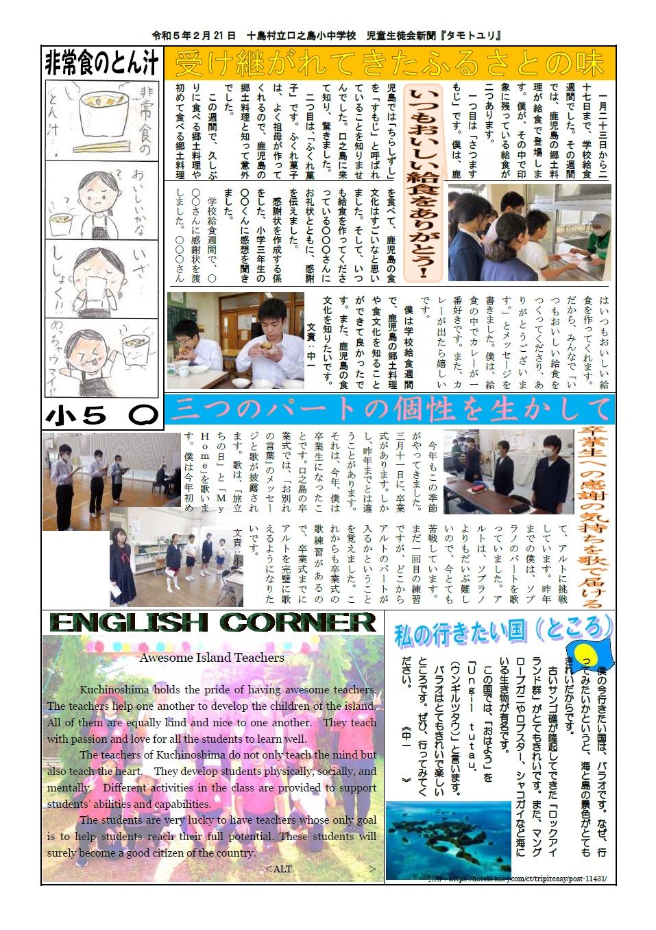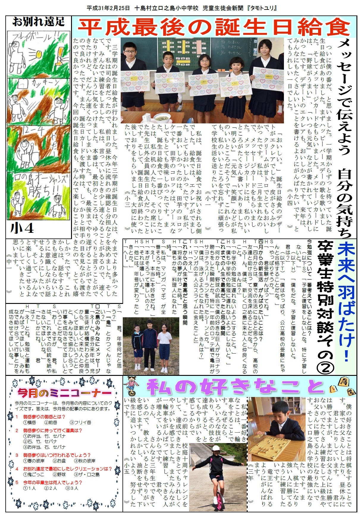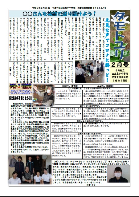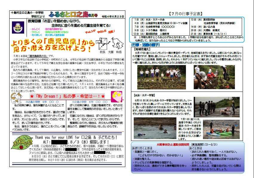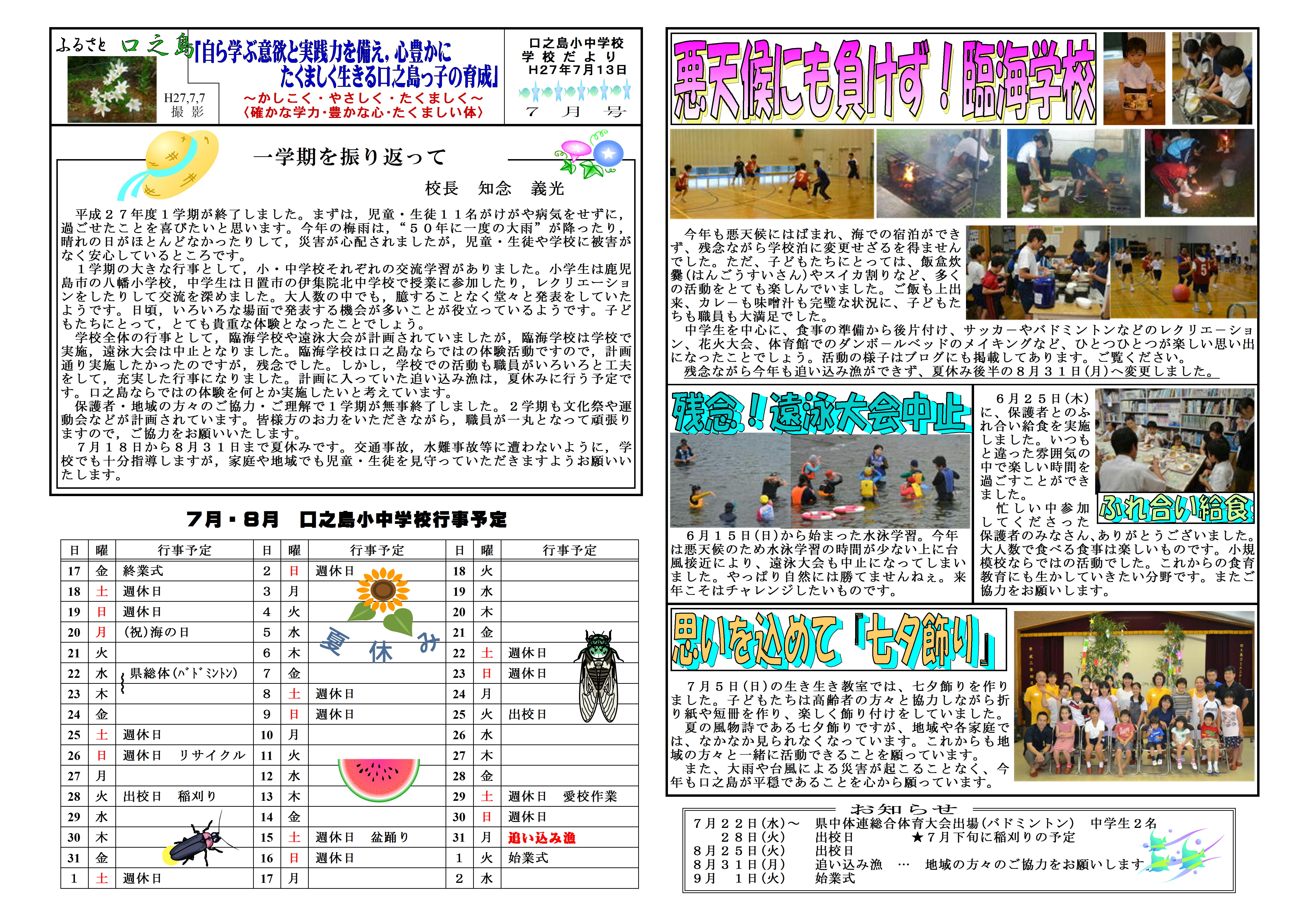 毎月発行している,「学校だより」を掲載します。PDF形式を見るには,「Adobe Reader」等の閲覧ソフトウェアが必要です。画像形式はそのままご覧いただけます(画像はJPEG形式です)。なお,プライバシー保護のため,写真にはぼかしを入れ,個人名等は削除してありますのでご了承下さい。
