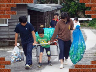 月に一度,子ども会活動の一環として,早朝クリーン活動を行っています。各家を回って空き缶やペットボトル,空き瓶を集め,まとめてリサイクルに出します。