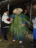 カセダウチは,毎年旧暦の12月14日に行われ, 1年中雨がよく降り豊作であるように,また,島民の 無病息災を祈って行われる行事です。 ビロウの葉を体にまとい,頭にはかぶり笠を身に つけた福徳神(フットコジン)が,島の全家庭をまわ ります。 |
