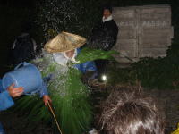 そして,これだけでは終わりません。 福徳神が各家庭を移動する際,島の子どもたちは, 神様めがけて水を掛けるのです。これは,福徳神に 水を掛ければ,1年中雨がよく降り豊作になると言わ れるからです |