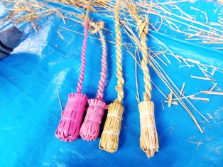 どっしん俵作り。地域の方に教えていただきながら, 作りました。 |
