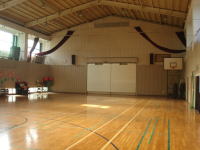| 平成2年3月に落成しました。 | 中は広々としていて,正面の白い壁は引き出すとステージになります。 |