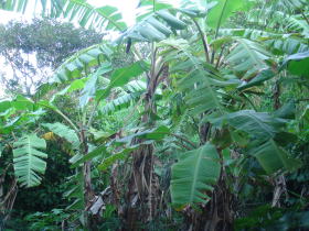 | 南国情緒のあるバナナの木は学校だけでなく,島内どこでも見られます。 |
