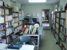 | 児童生徒の図書館として,また島民の図書館として愛されています。パソコン室も兼ねています。 |