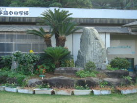 | 教育目標が刻まれた創立三十周年の記念碑が建てられています。 |