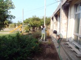 月ごとに作業場所を交代しながら,時間いっぱい清掃します。小学生と中学生が一緒になって活動します。 |