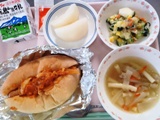 おいしいおいしい自校給食です。火曜日はパンの日で,「手作りパン」は一番人気です。 |