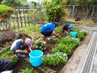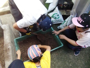 ポットに種を植えました。大きくなったらプランターや学級園に植え直します。