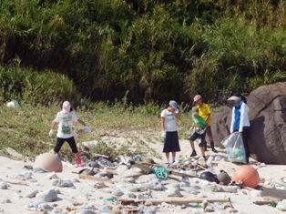 海岸に流れ着いたゴミを集めて,内容物の調査をします。