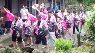 旧暦のお盆に行われます。みんなで踊って集落を回りました。 |