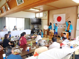 自治会の敬老会です。太鼓演奏を披露しました。 |